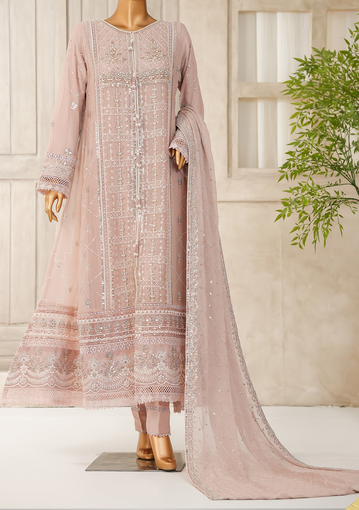 Includes: Ready-Made Kameez, Trouser, Dupatta.
