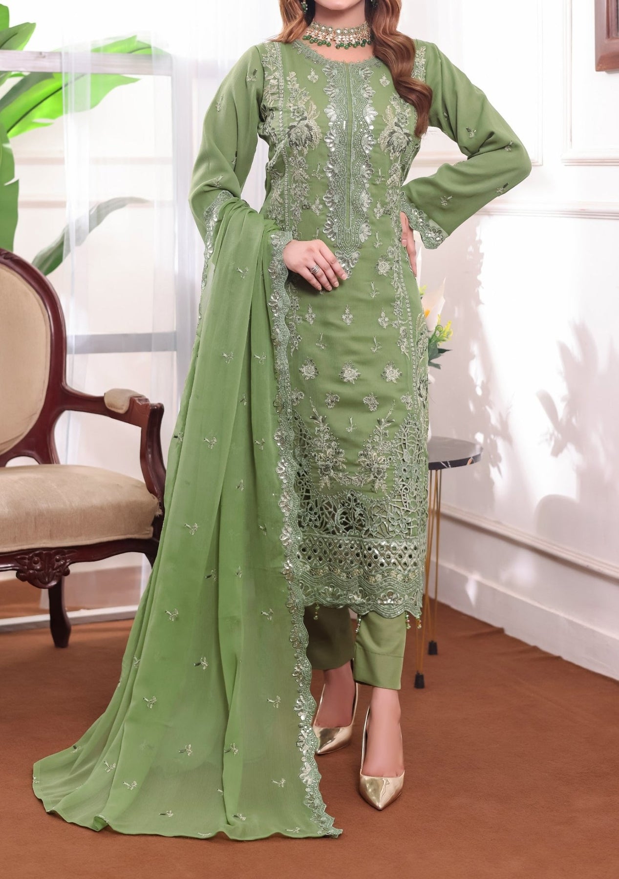 Includes: Ready-Made Kameez, Trouser, Dupatta.