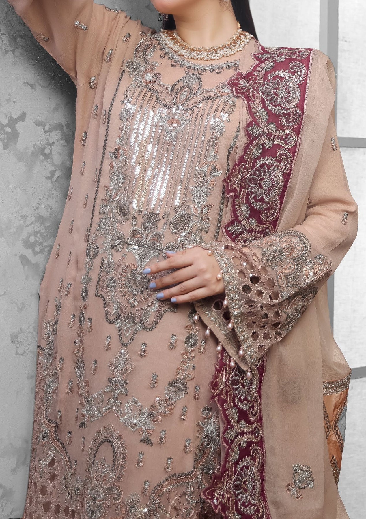 - Chiffon Embroidered Handwork Kameez.