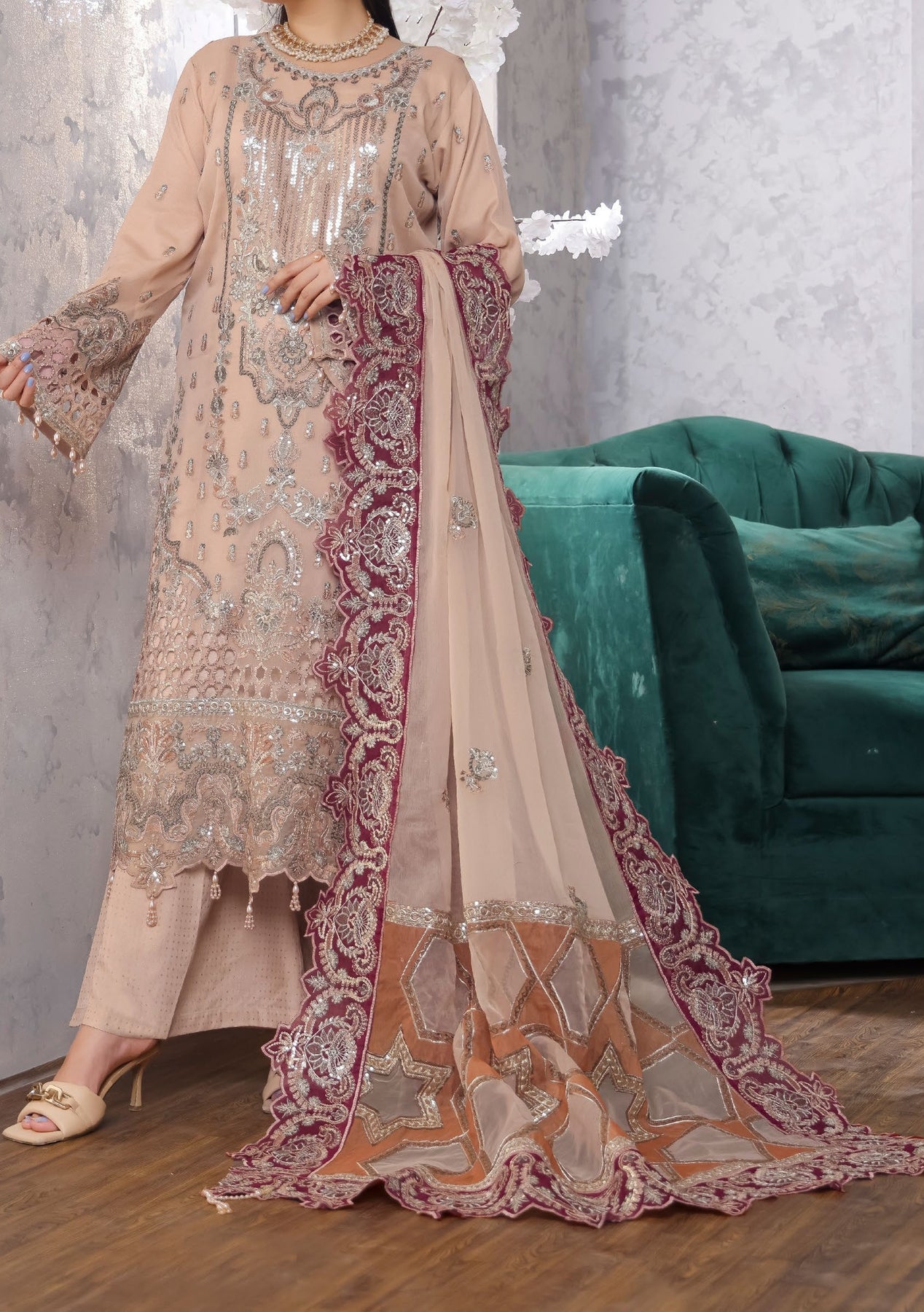 - Heavy Embroidery and Sequences Work.