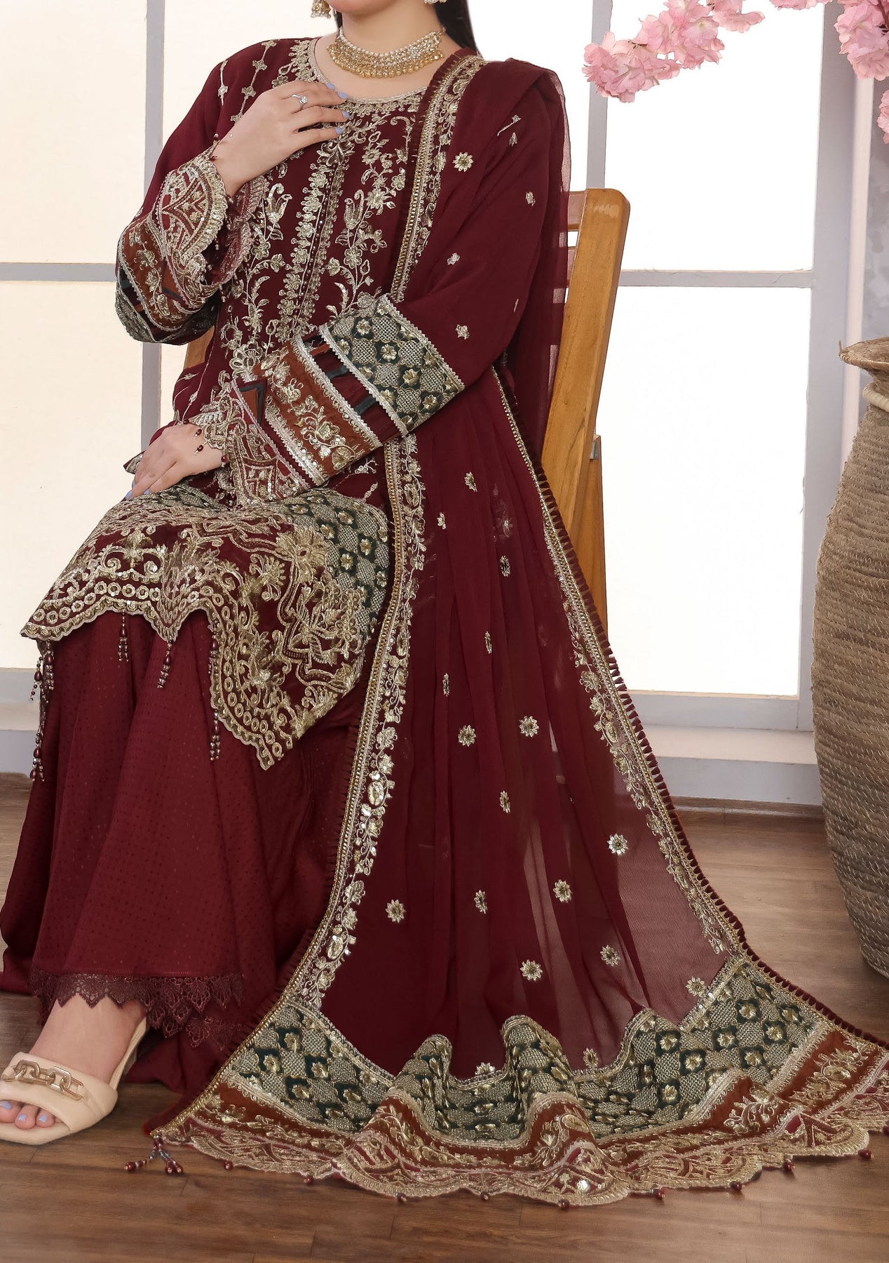 • Embroidered Chiffon Dupatta With Border Work.