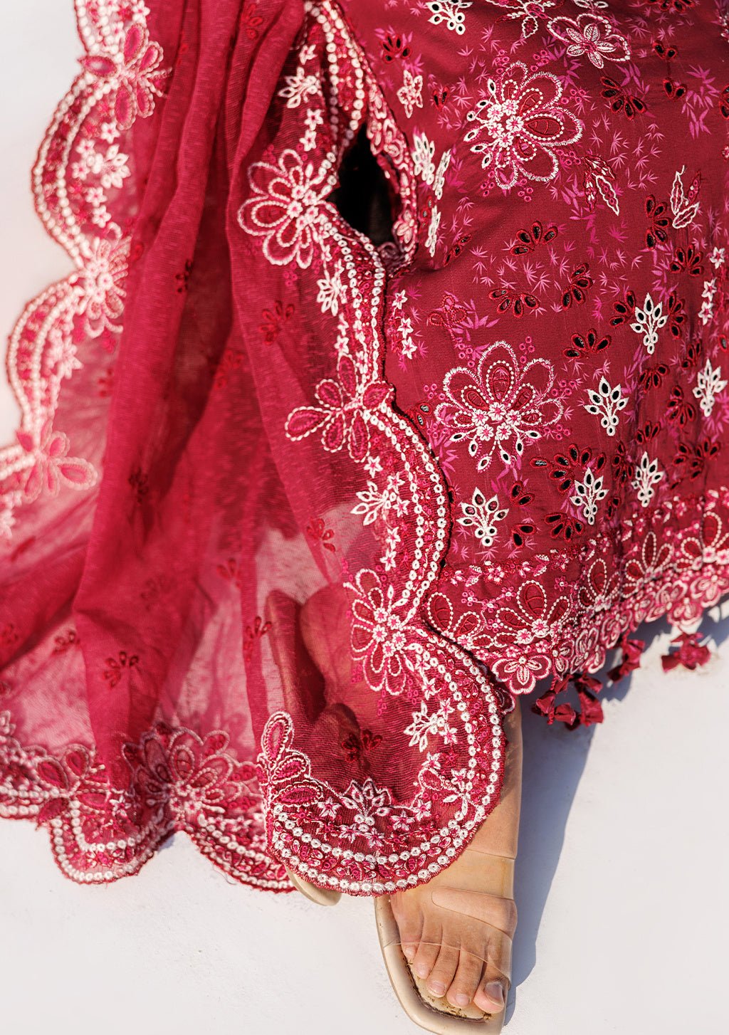 - Organza Embroidered Front and Back Border.